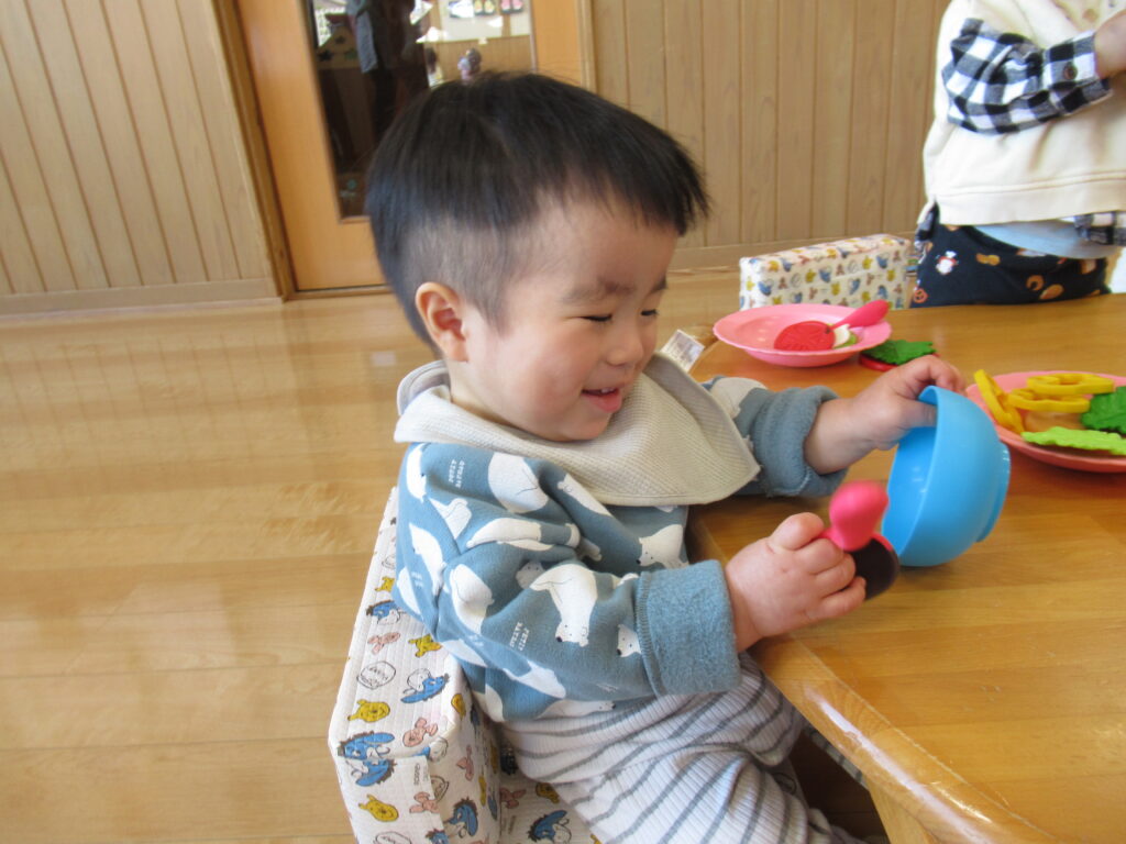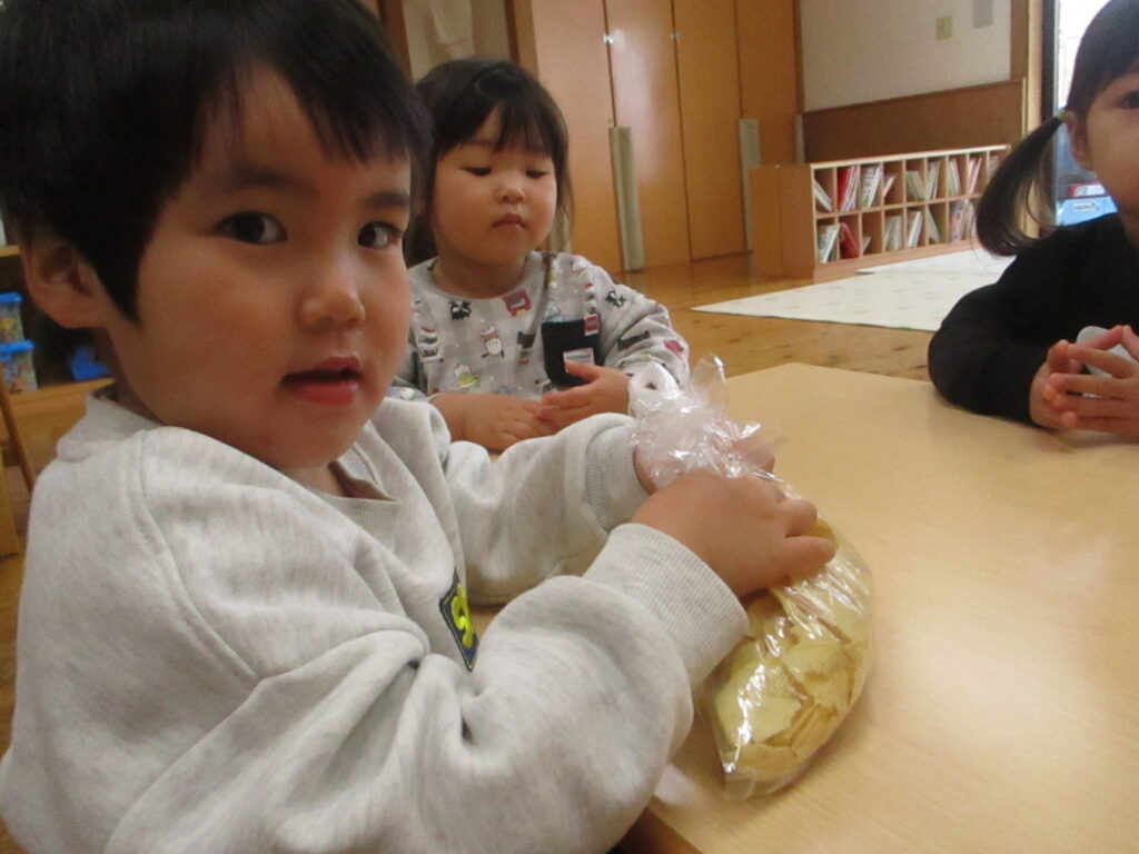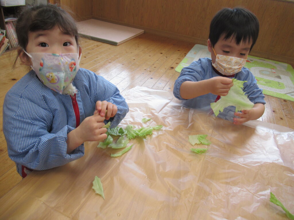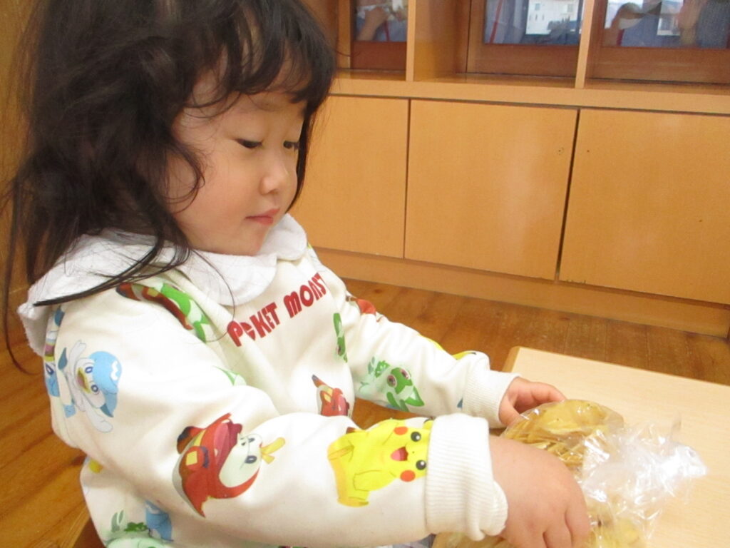 「小さいお友だち食べれるかな?」と大きさを考えながらちぎる姿にほっこりしました。