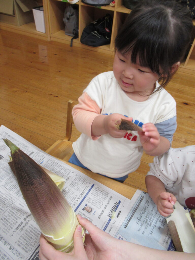 その後は皮を一枚ずつ剥き「わぁ!」と驚いたり、「剥けたっ!」と喜んだりしていたばら組さんでした。