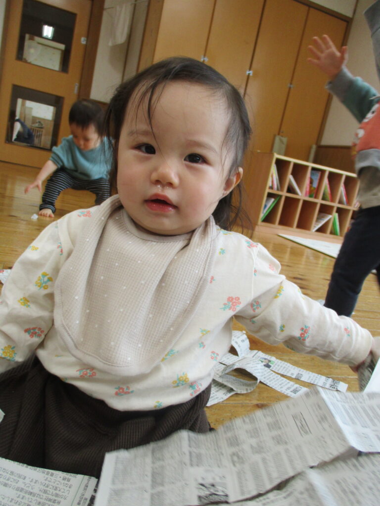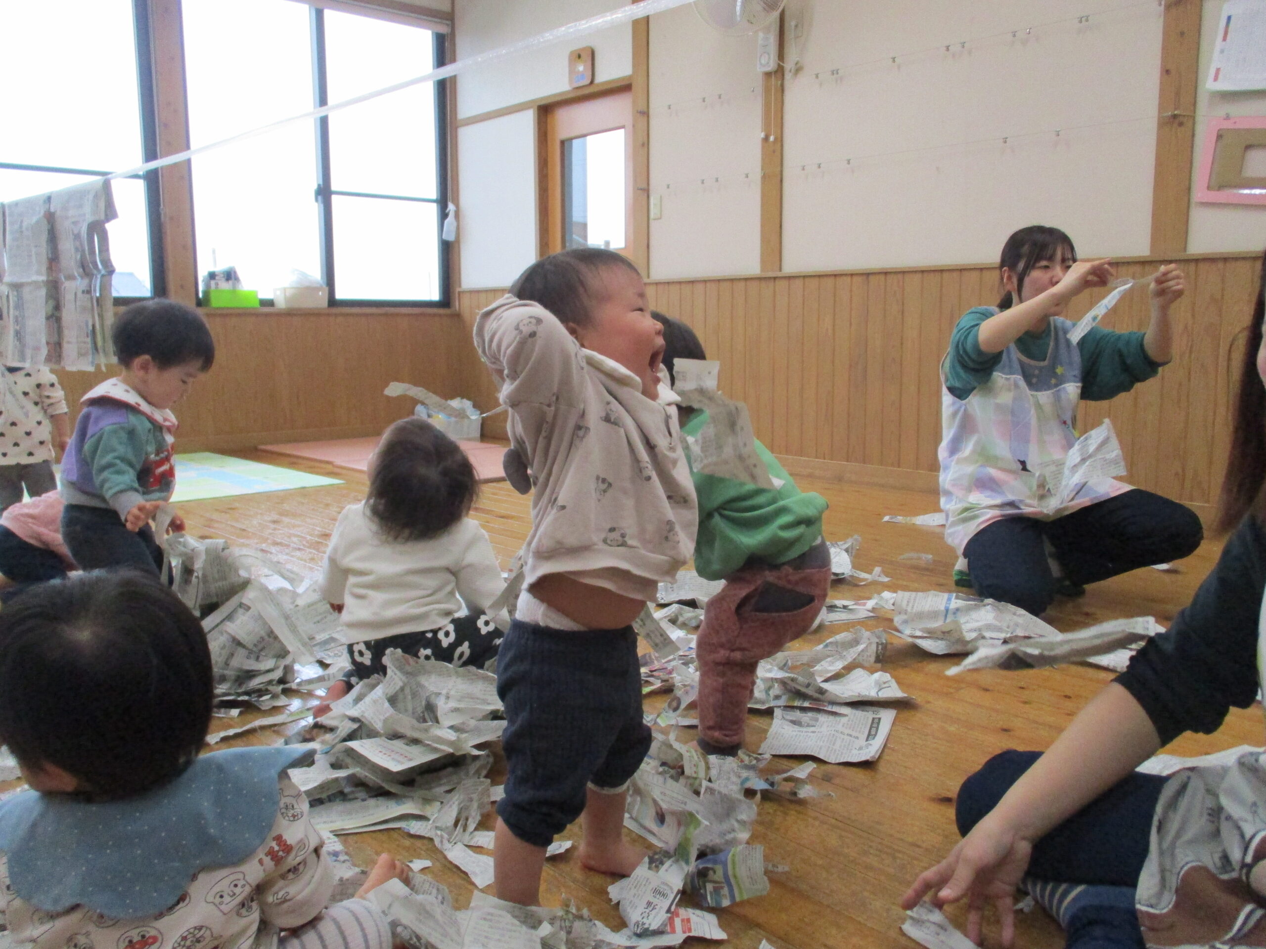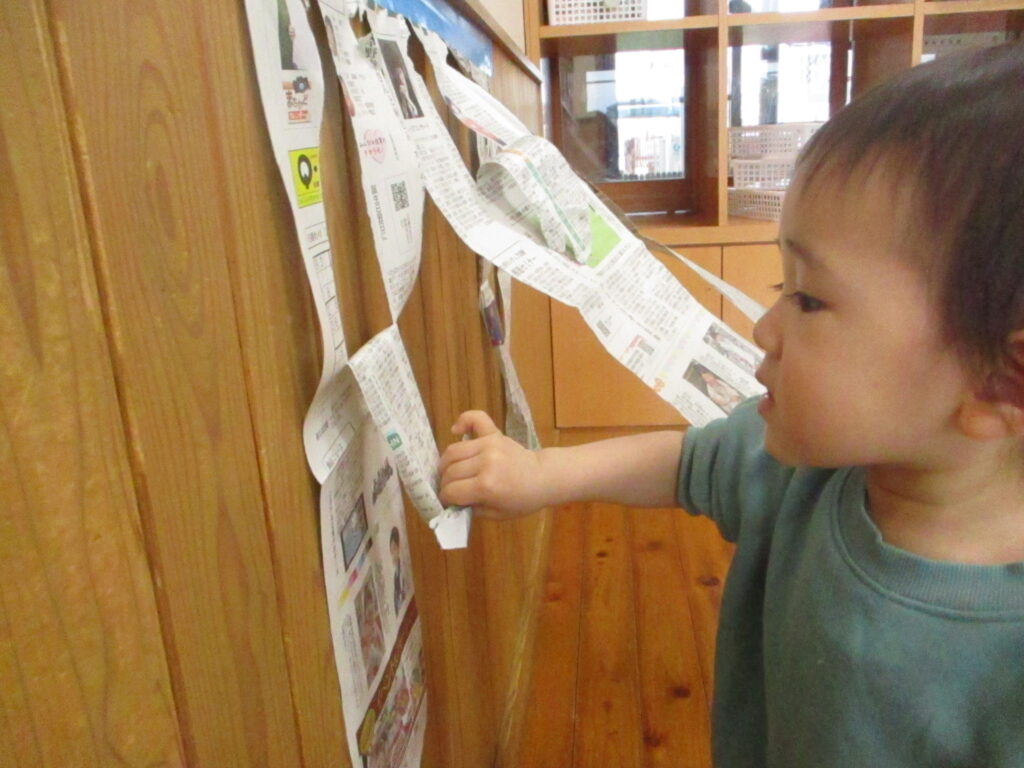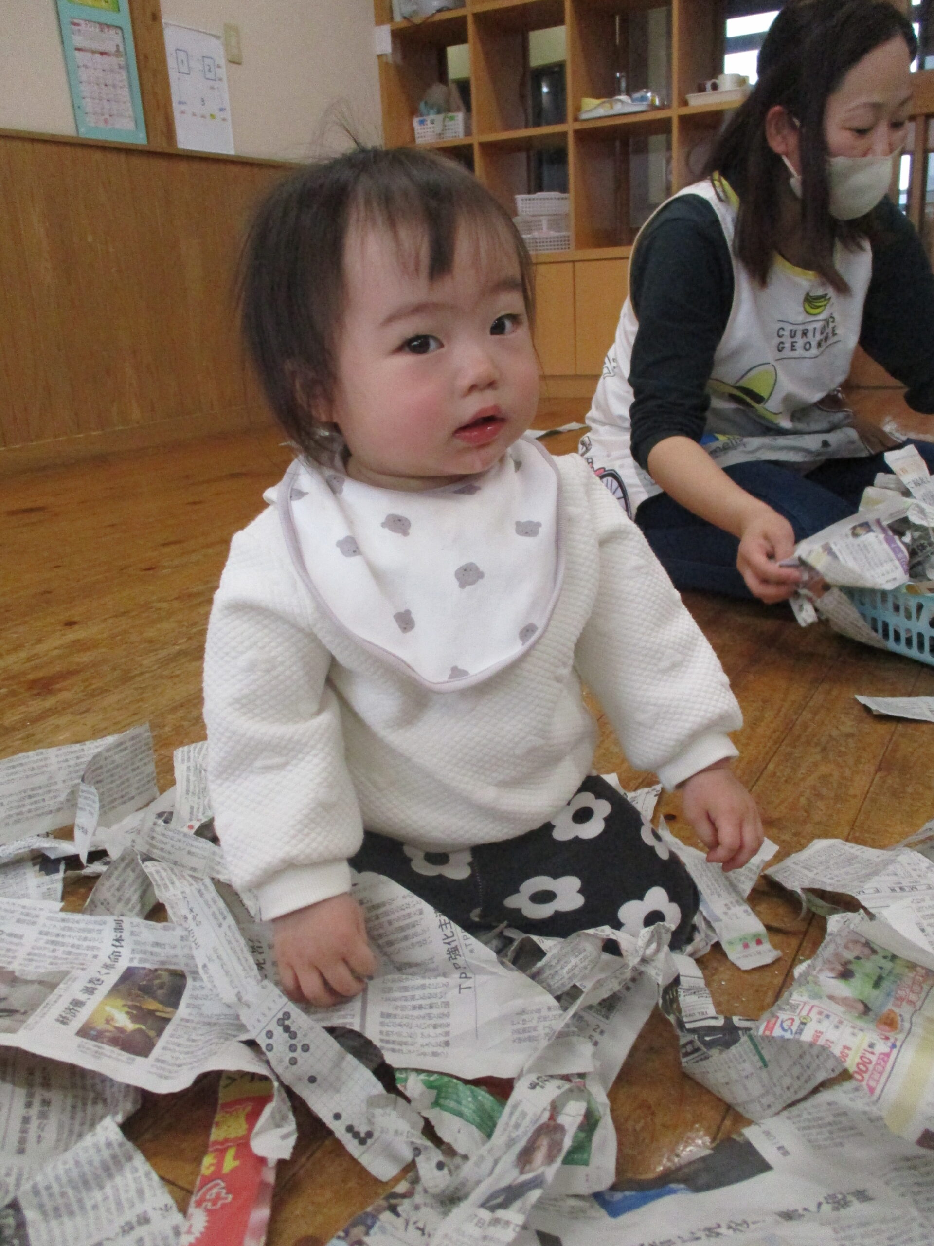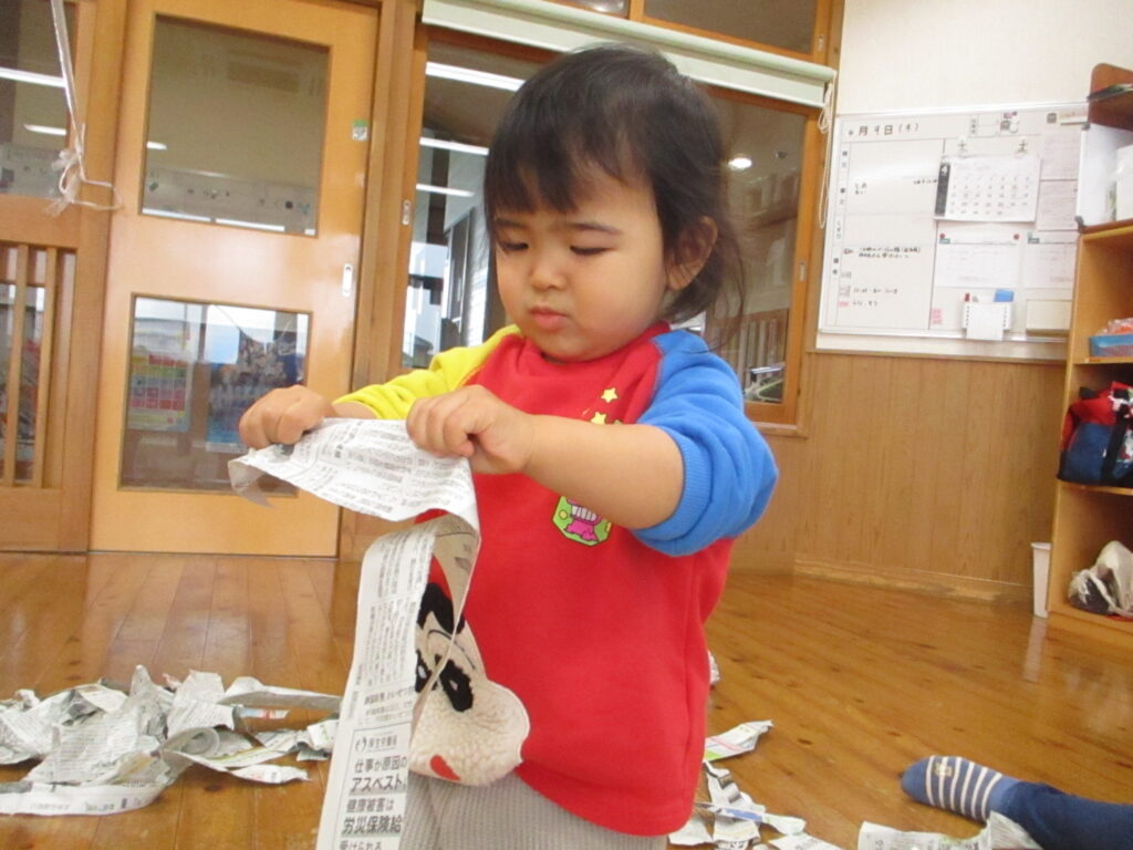 手先が器用な子どもたちで「ビリビリ~」と言いながら上手に紙を破いていましたよ!