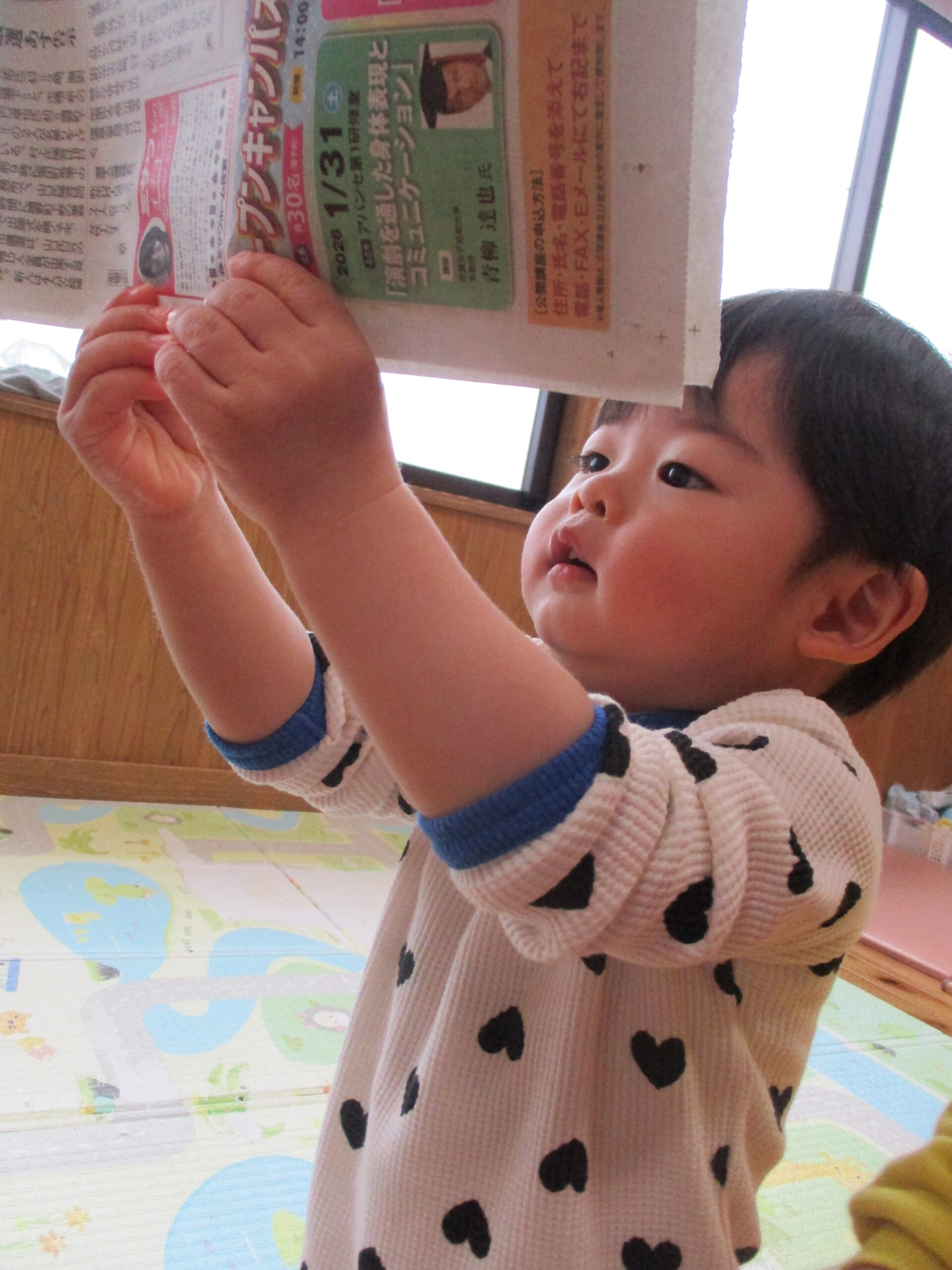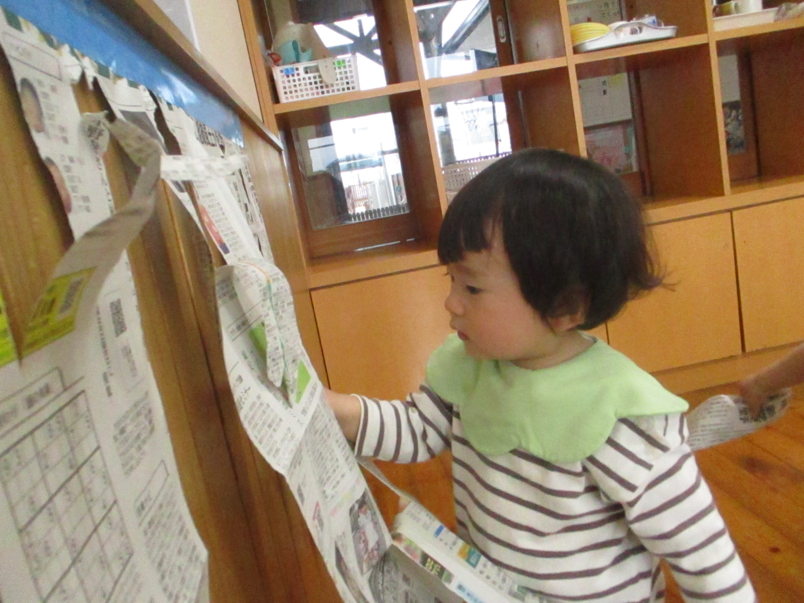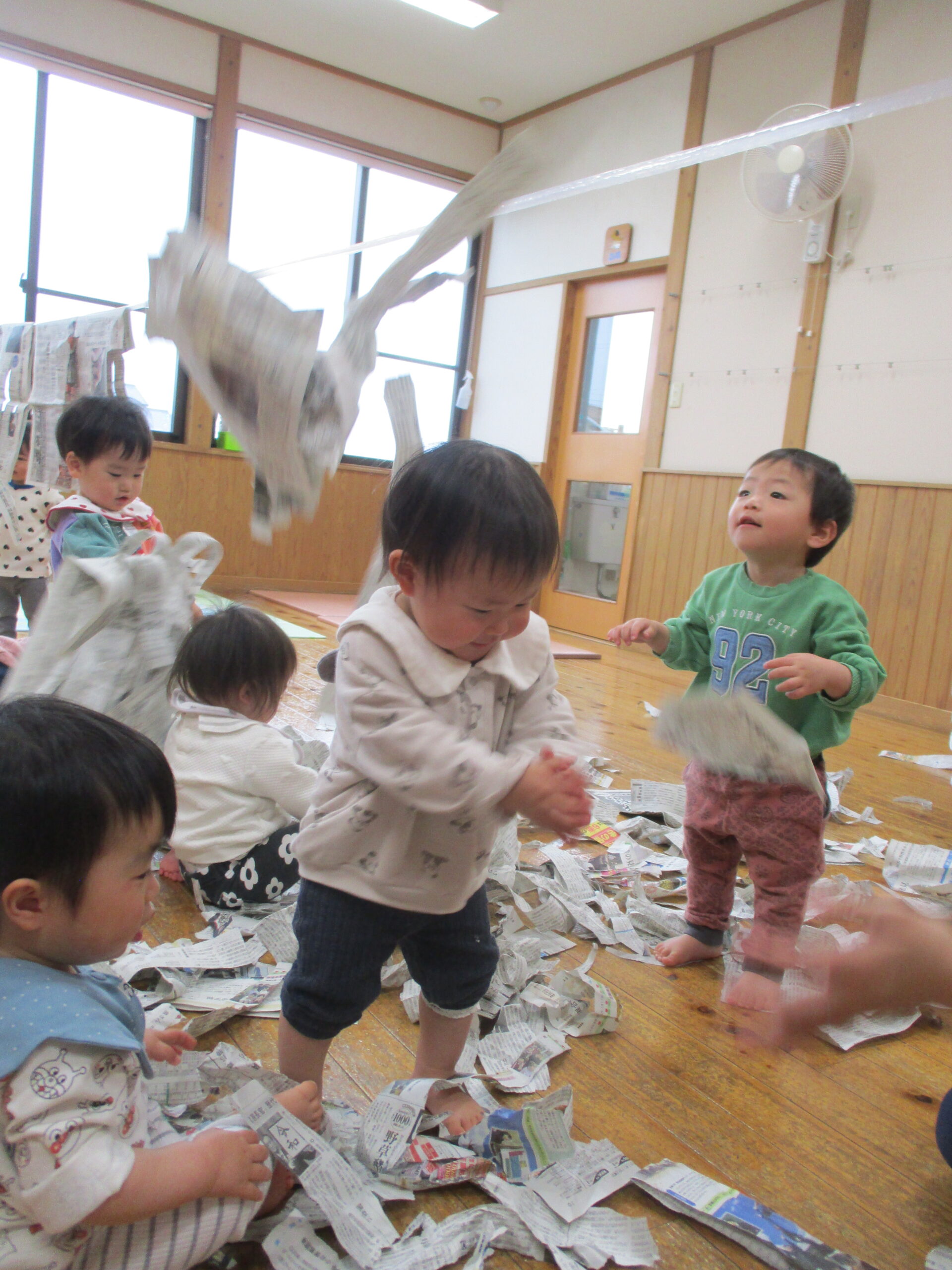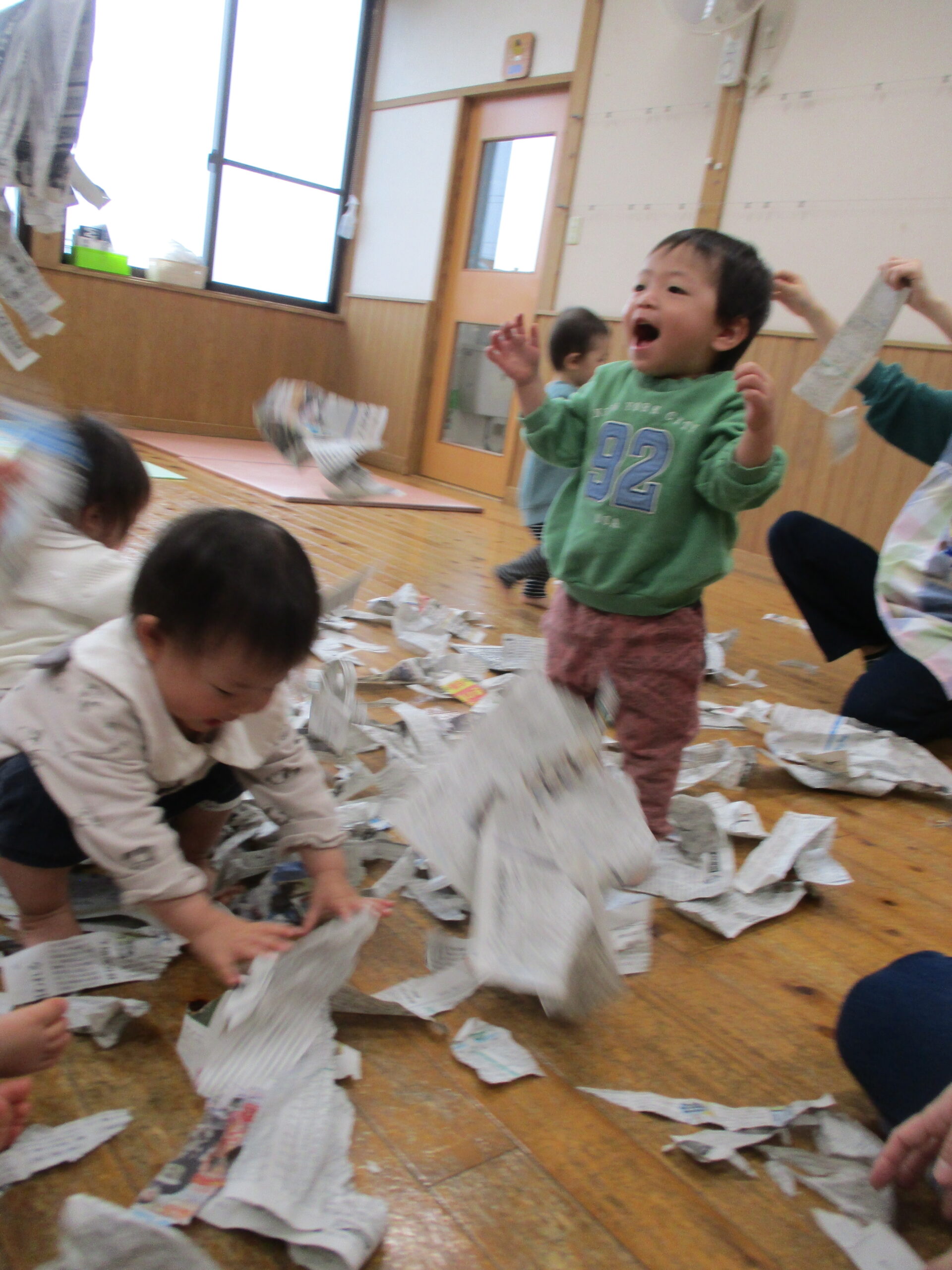 手先が器用な子どもたちで「ビリビリ~」と言いながら上手に紙を破いていましたよ!