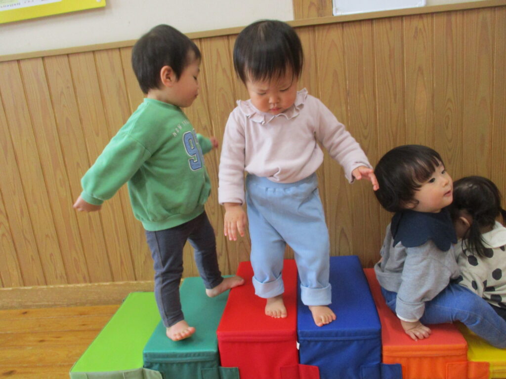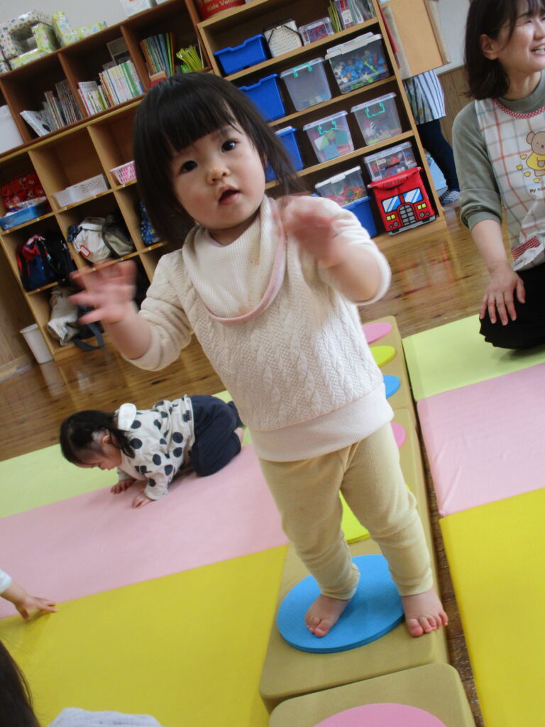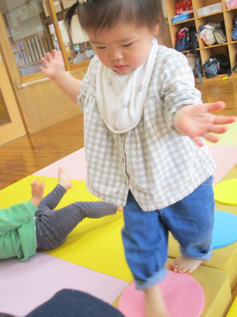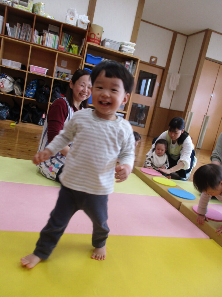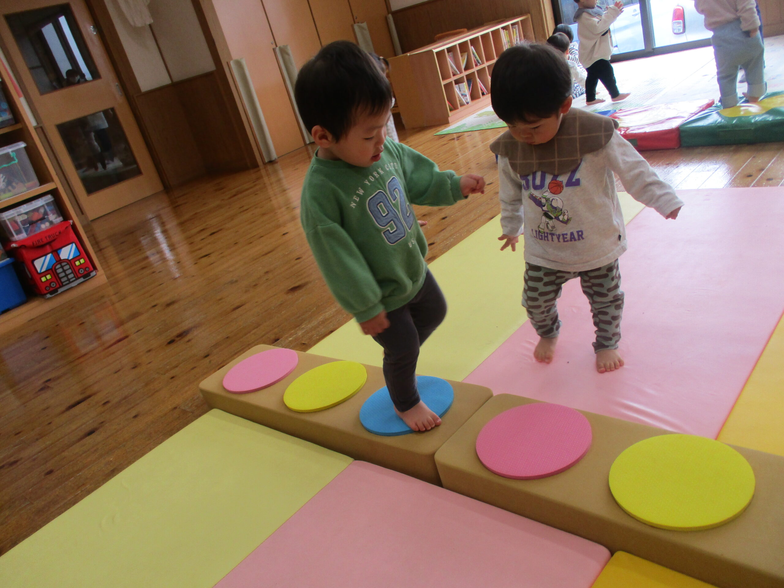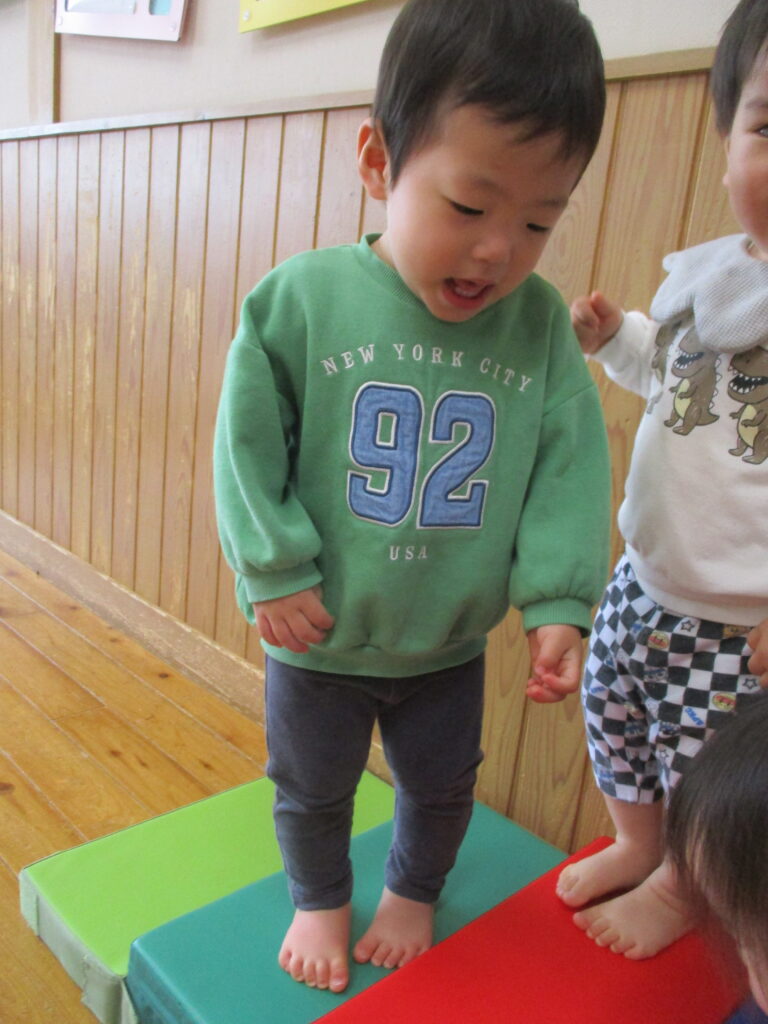 ジャンピングマットでは、飛び跳ねながら渡って楽しんでいました。